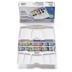 Discover 14 Cotman Watercolours made with quality, fine art pigments. This set is ideal for outdoor use as it includes a brush and palettes with multiple mixing areas. Field Set was previously named The Compact Set.