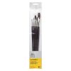 Specifically designed for use with acrylic colour. The versatility of acrylic colour can place heavy demands on brushes so this range has been created to be strong, resilient and flexible.The mix of synthetic filaments provide responsiveness and control for thicker application of colour, whilst maintaining shape retention, regardless of how much water you use. The synthetic filaments in the flat brushes are curved, helping to retain the original shape during use. The round brushes offer a good point for delicate linear application.The brushes with short-handles have a softer head, ideal for glazing or a watercolour style of painting. The long-handled brushes are made from stiffer filaments, allowing thicker application on tougher surfaces