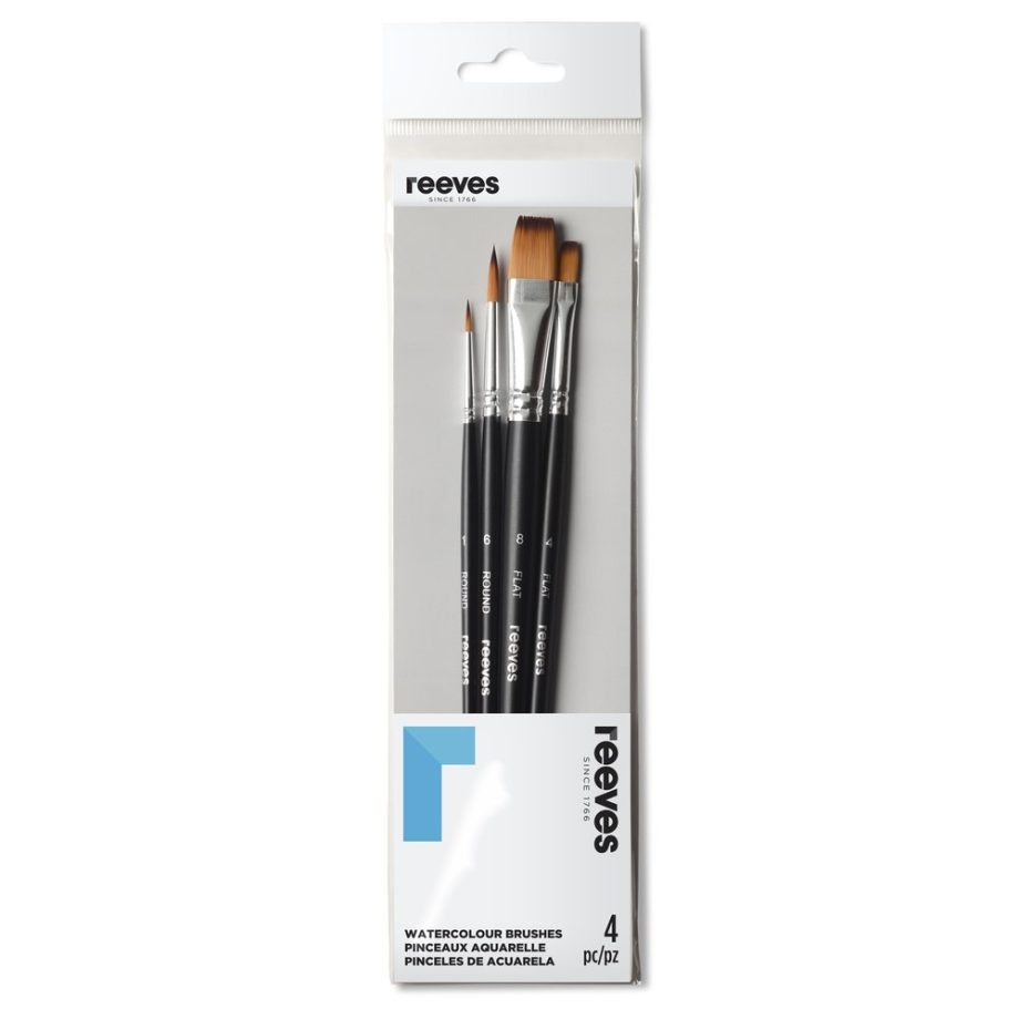 reeves Synthetic Watercolour Brush Short Handle x4 Set